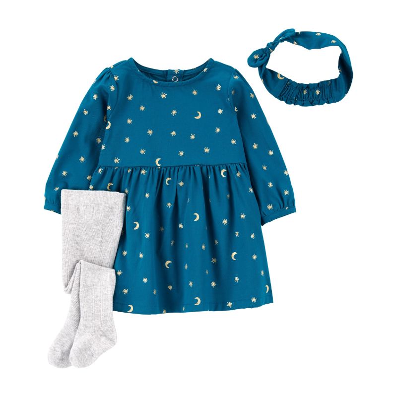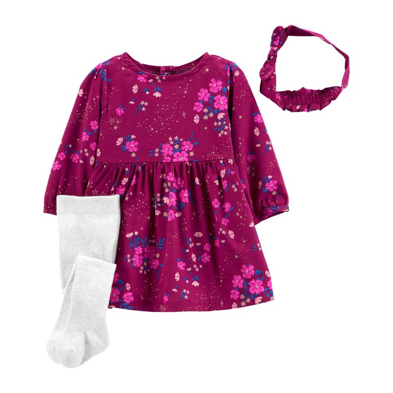 Комплет за бебе фустан, хулахопки и лента за коса